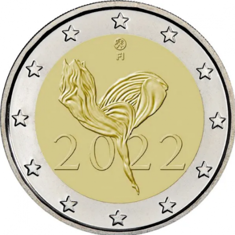 Moneda de 2 Euro Finlandia 2022 dedicada al 100º aniversario de Ballet Nacional de Finlandia procedente de cartucho en calidad S/C.