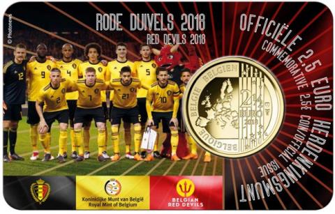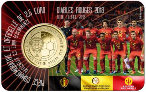 Coincard Bélgica con la moneda conmemorativa de 2.5 Euro dedicada al equipo de fútbol de Bélgica (Los diablos Rojos) que estarán presentes en el mundial de la FIFA 2018.
