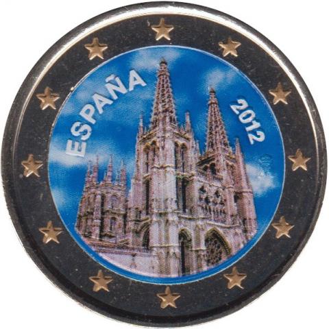 Moneda de 2 Euro España 2012 conmemorativa de la Catedral de Burgos sacada de cartucho en estado SC. Coloreada