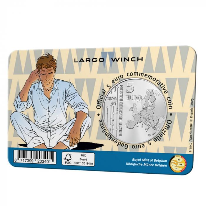 Coincard oficial de Bélgica con la moneda de 5 Euro 2025 dedicada a Largo Winch, en calidad BU.
