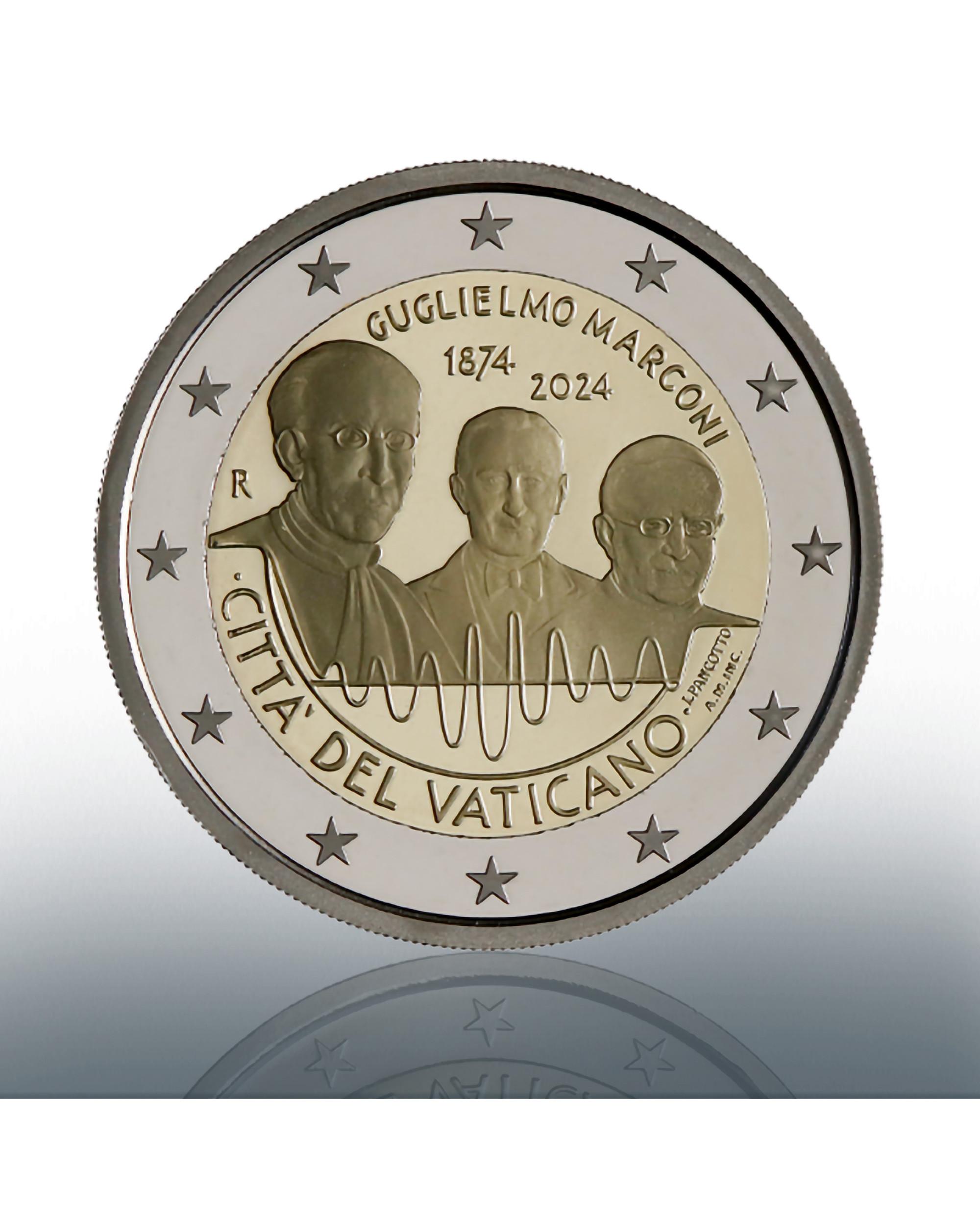 Cofre oficial del Vaticano con los 2 Euro 2024 dedicados al 150.º aniversario del nacimiento de Guglielmo Marconi, en calidad PROOF.
