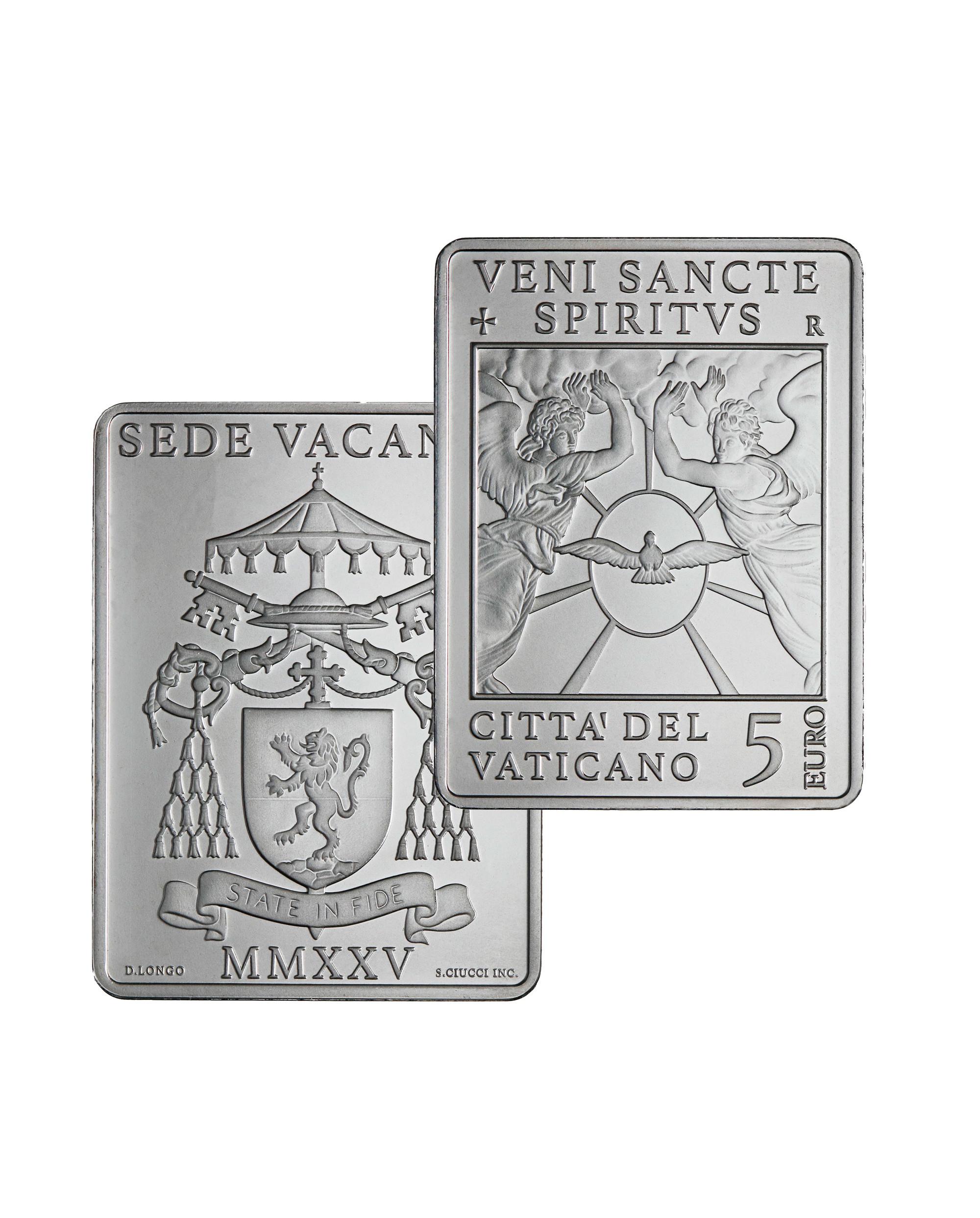 Cofre Vaticano con los 5 Euro 2025 acuñados en Plata y dedicados a la Sede Vacante MMXXV, en calidad FDC.